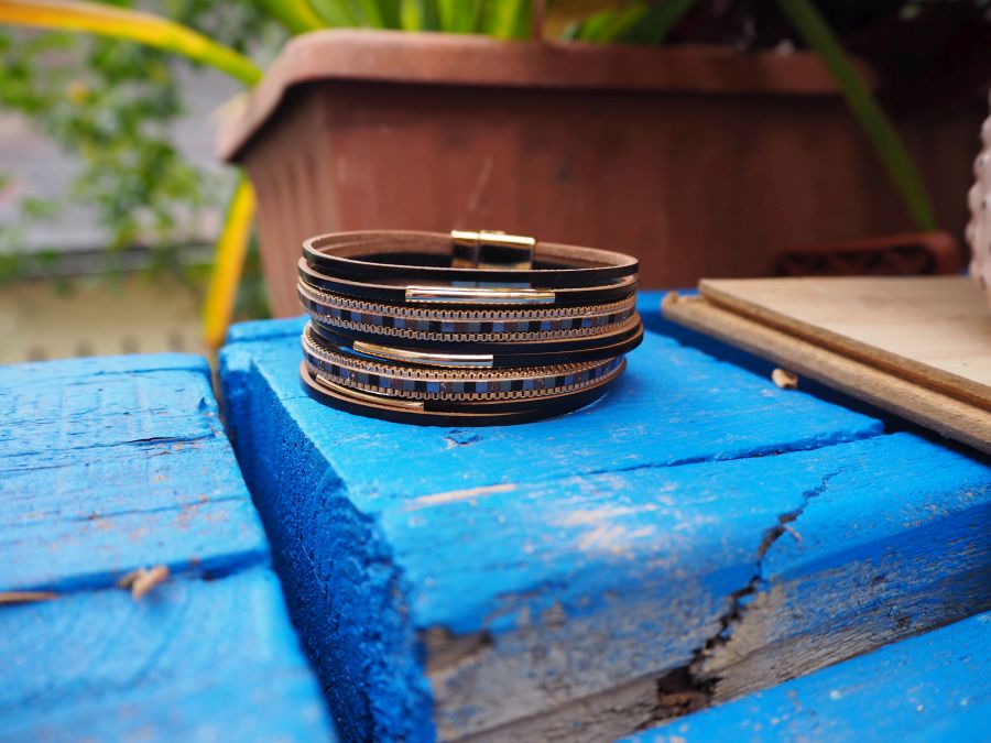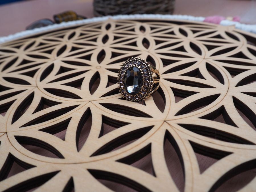 Zdobený prsten, barva kamínků: hnědá/šedivá, barva kovu: zlatá, kov: bežný bižuterní