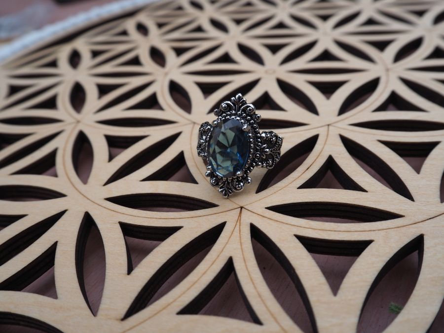 barva: stříbrná s modrým kamenem, kov: bižuterie