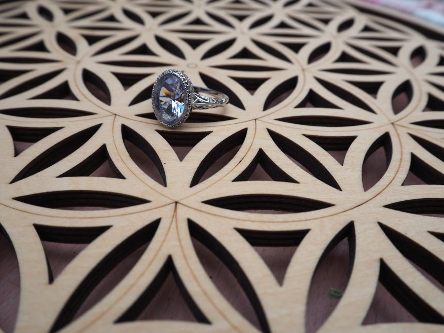 Prsten s kamínkem, barva kamínků: bílá, druh kamenu: zirkony, barva kovu: stříbrná, kov: běžný bižuterní, postříbřený. Tento prsten lze roztáhnout.